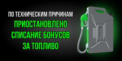 С 26.09.2025 по техническим причинам временно приостановлено списание бонусов за топливо...